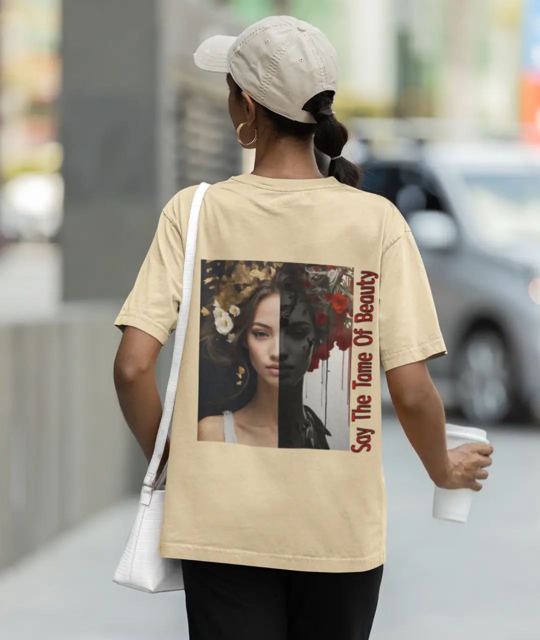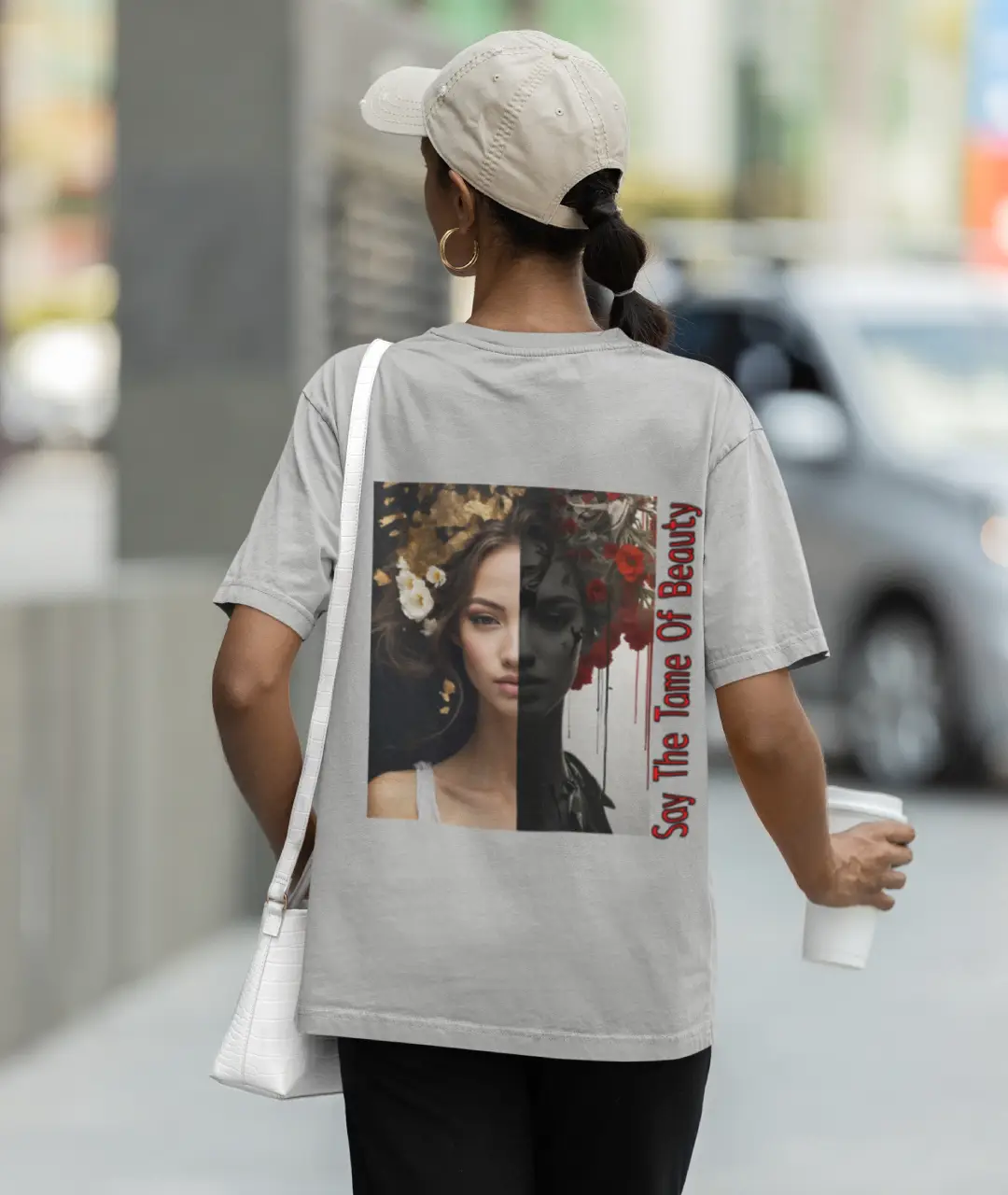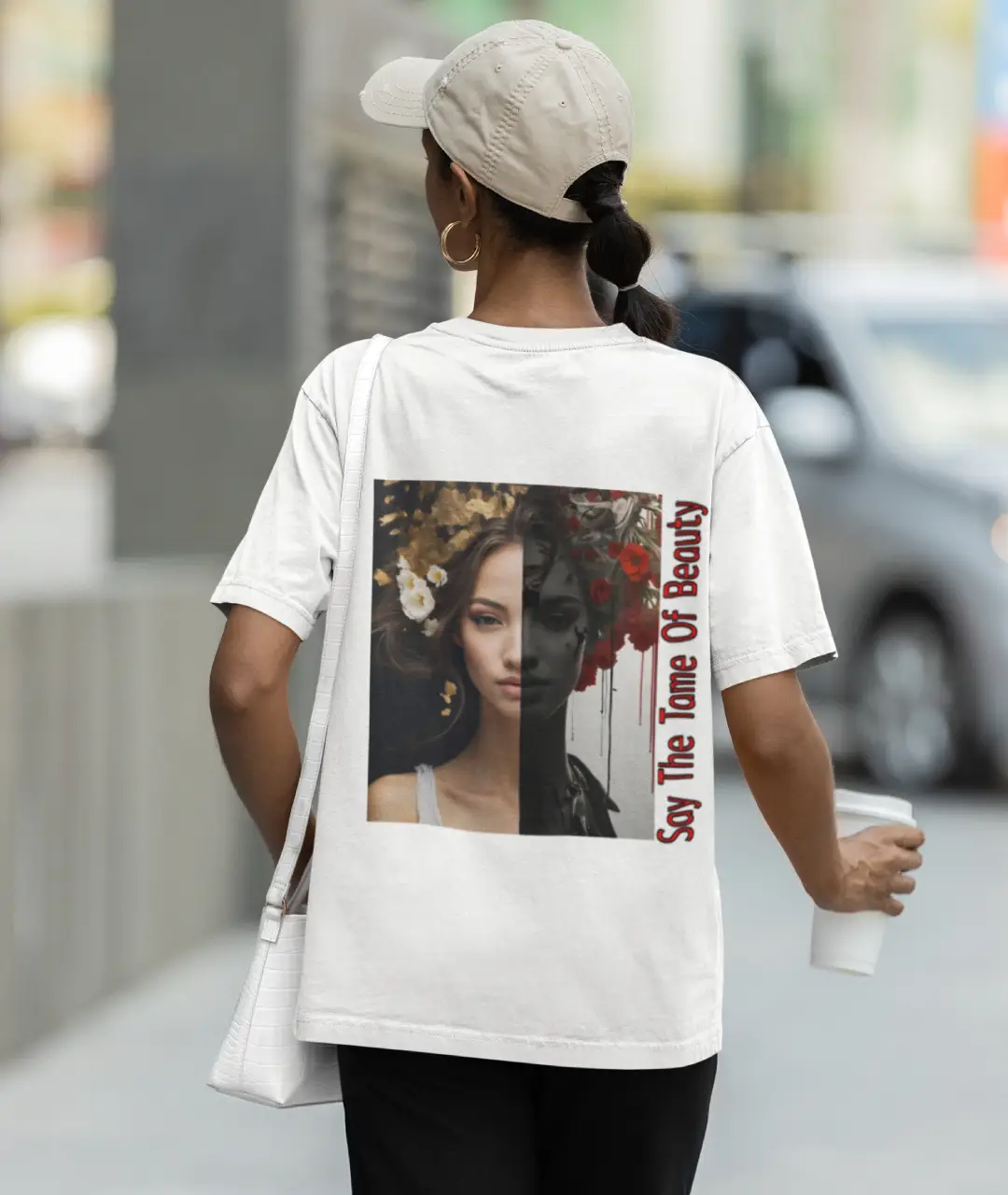 Kadın Oversize Sanatsal Baskılı Tişört – Say The Tame Of Beauty Ürün Özelikleri: