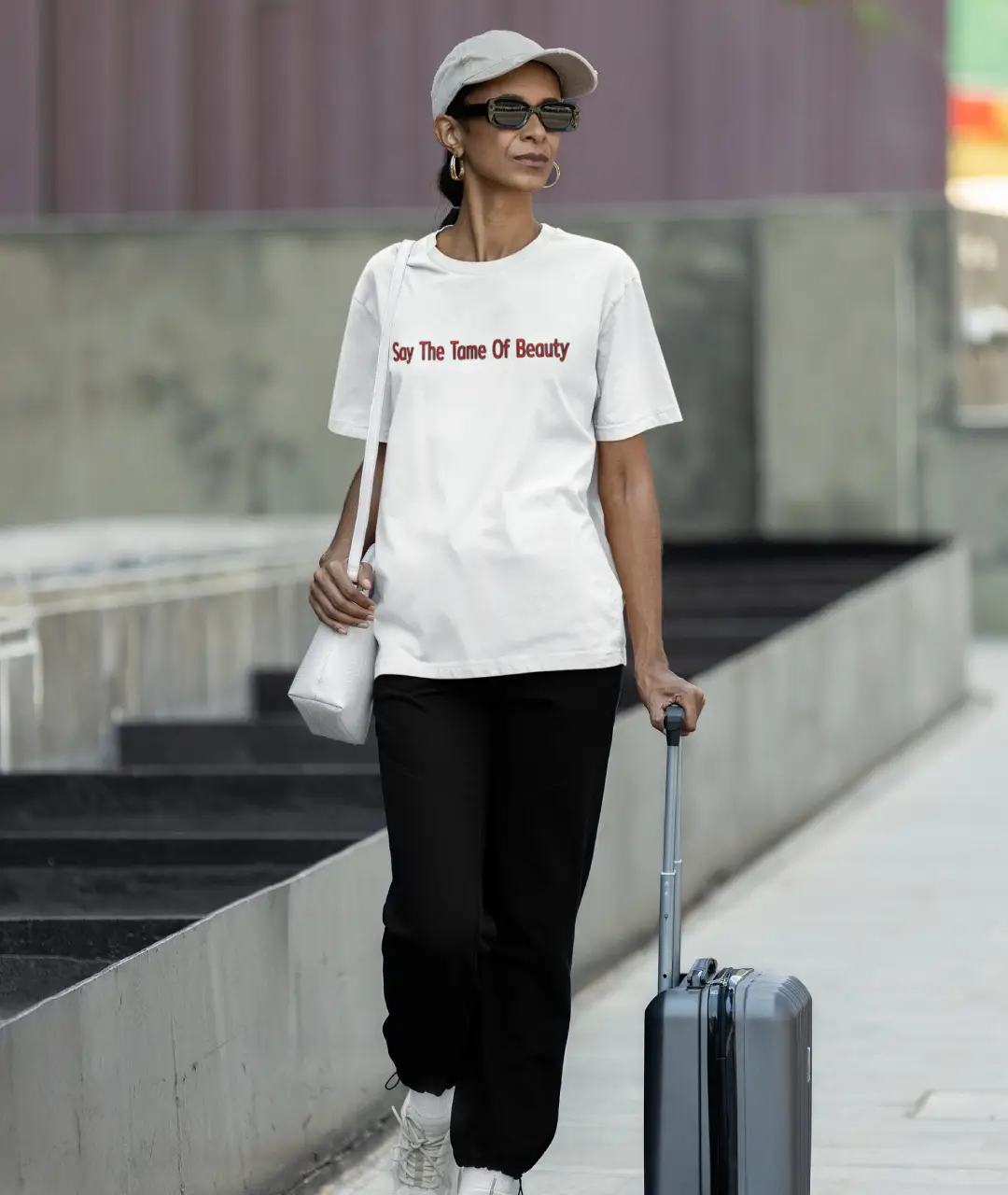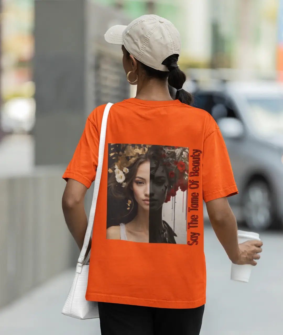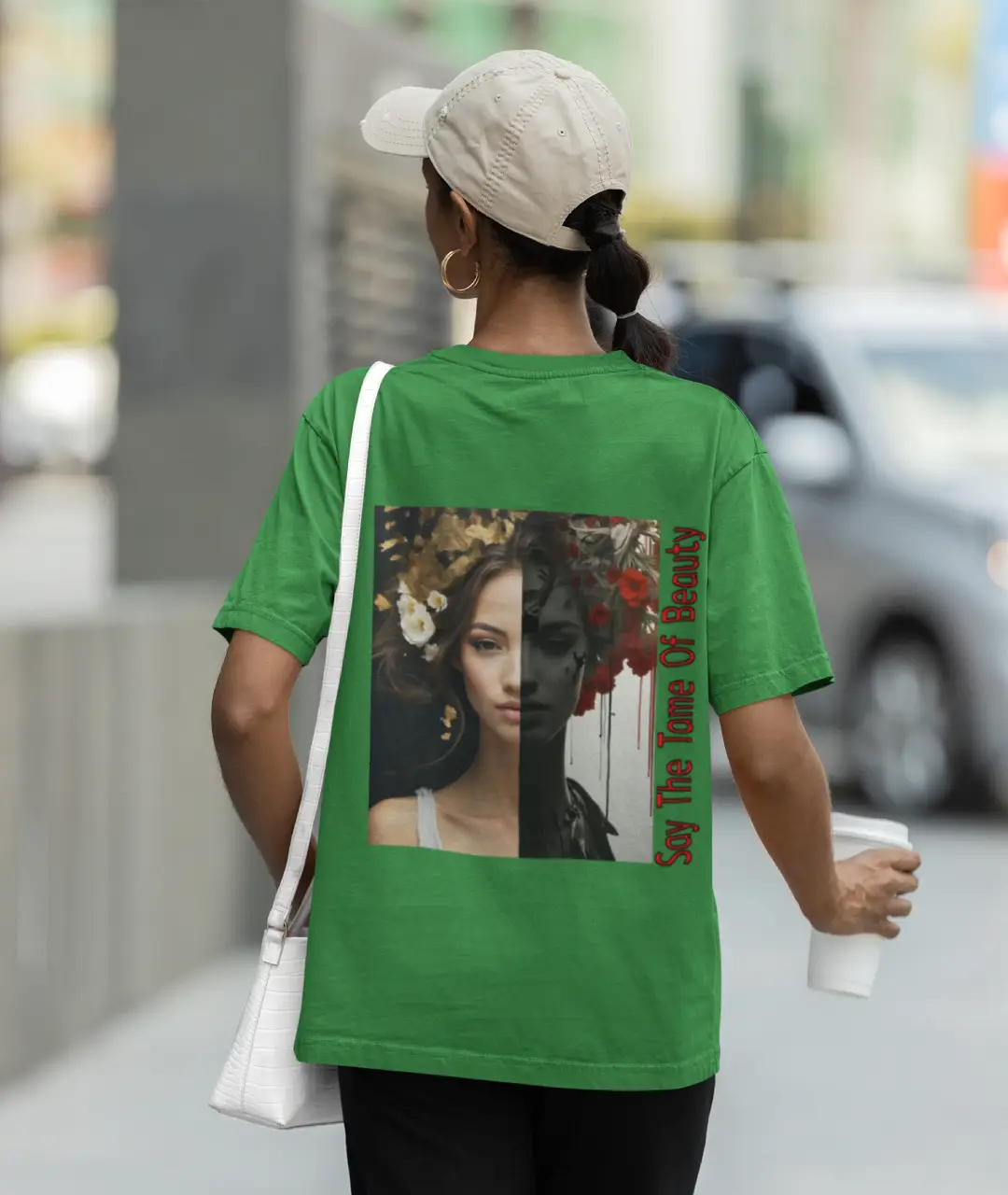 Kadın Oversize Sanatsal Baskılı Tişört – Say The Tame Of Beauty Ürün Özelikleri: