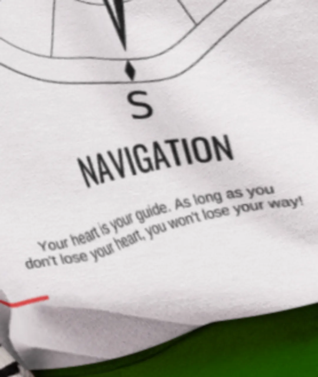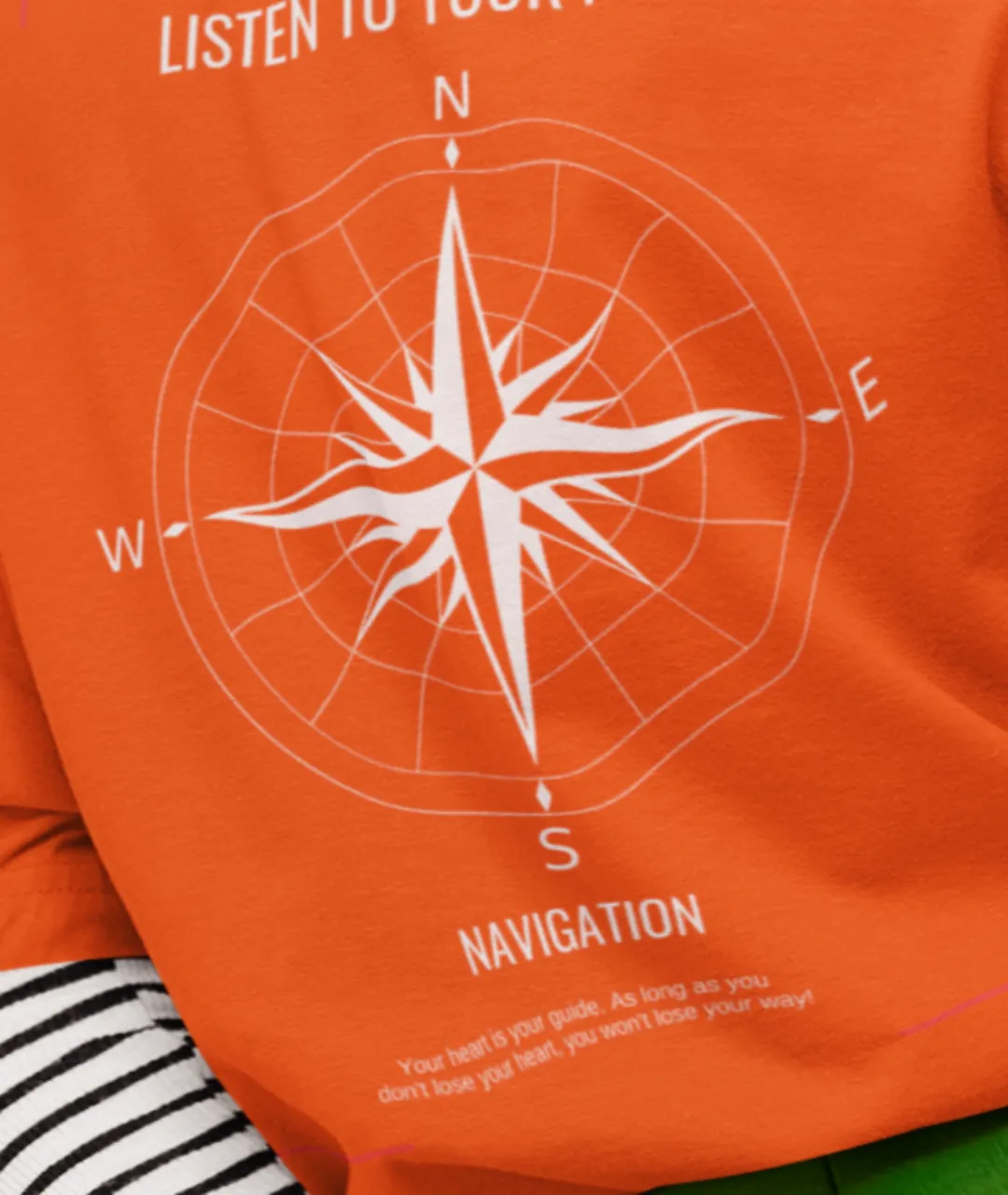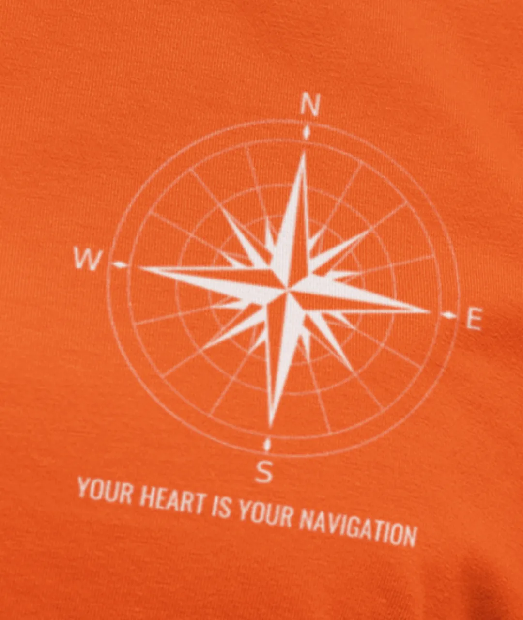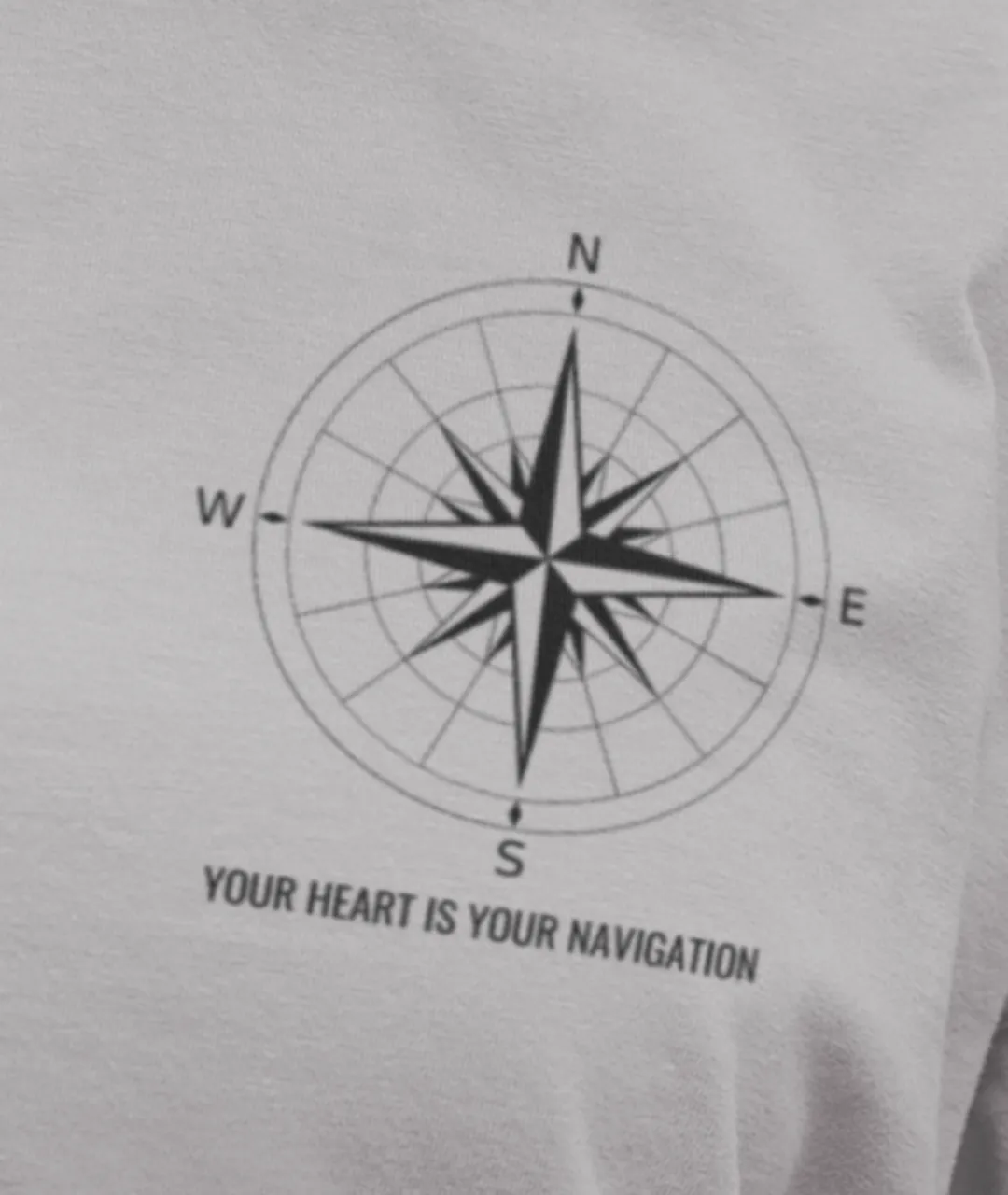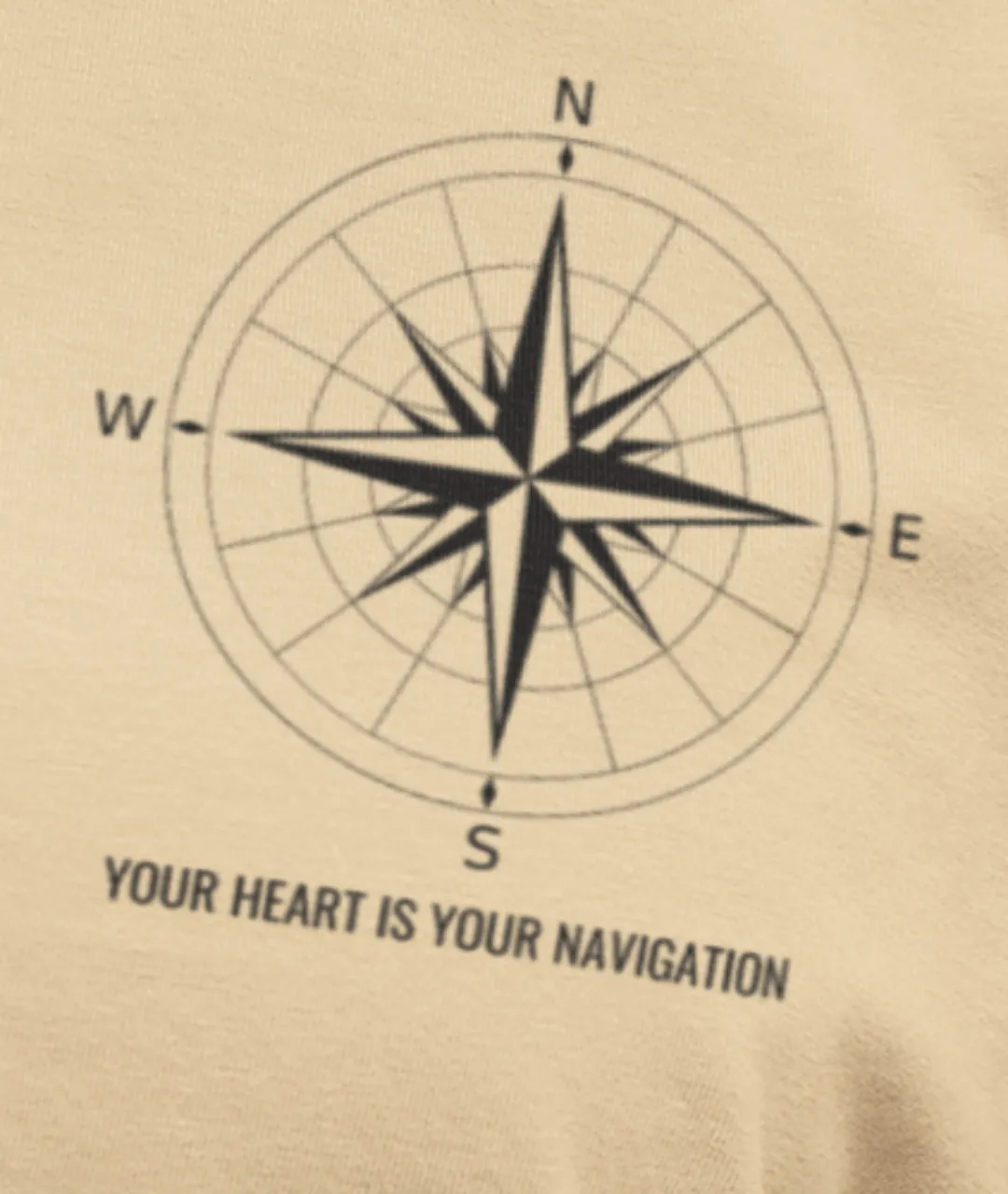 Navigation Baskılı Unisex Tişört, modern tasarımı, kaliteli kumaş yapısı ve ilham verici mesajıyla gardırobunuza hem tarz hem de anlam katıyor. Ön kısmında minimalist pusula baskısı, alt kısmında “Your Heart Is Your Navigation” (Kalbin senin pusulandır) yazısı yer alırken, arka kısmında büyük pusula deseni ve “Listen To Your Heart” (Kalbini dinle) mesajı dikkat çekiyor. Bu güçlü tasarım, yön bulmanın sembolü pusula ile bireysel yolculuğunuzu temsil eden anlamlı sözleri bir araya getiriyor.