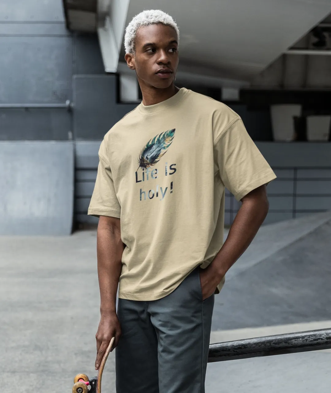 Life is Holy Baskılı Oversize Erkek Tişört – Kutsal Yaşam Tasarımı Ürün Özelikleri: