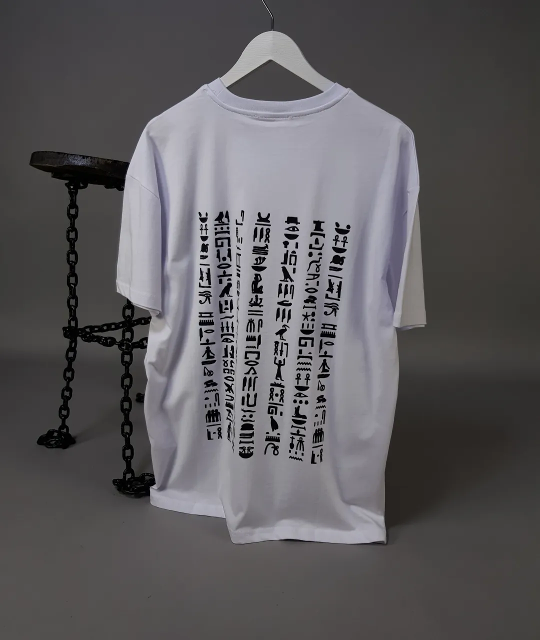 Mısır Alfabesi Baskılı Unisex Tişört – Oversize Özelikleri: