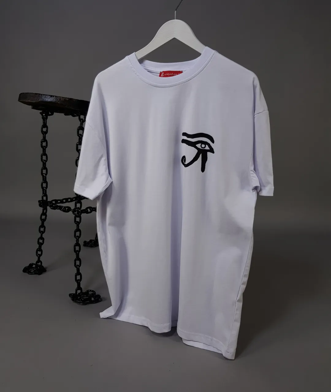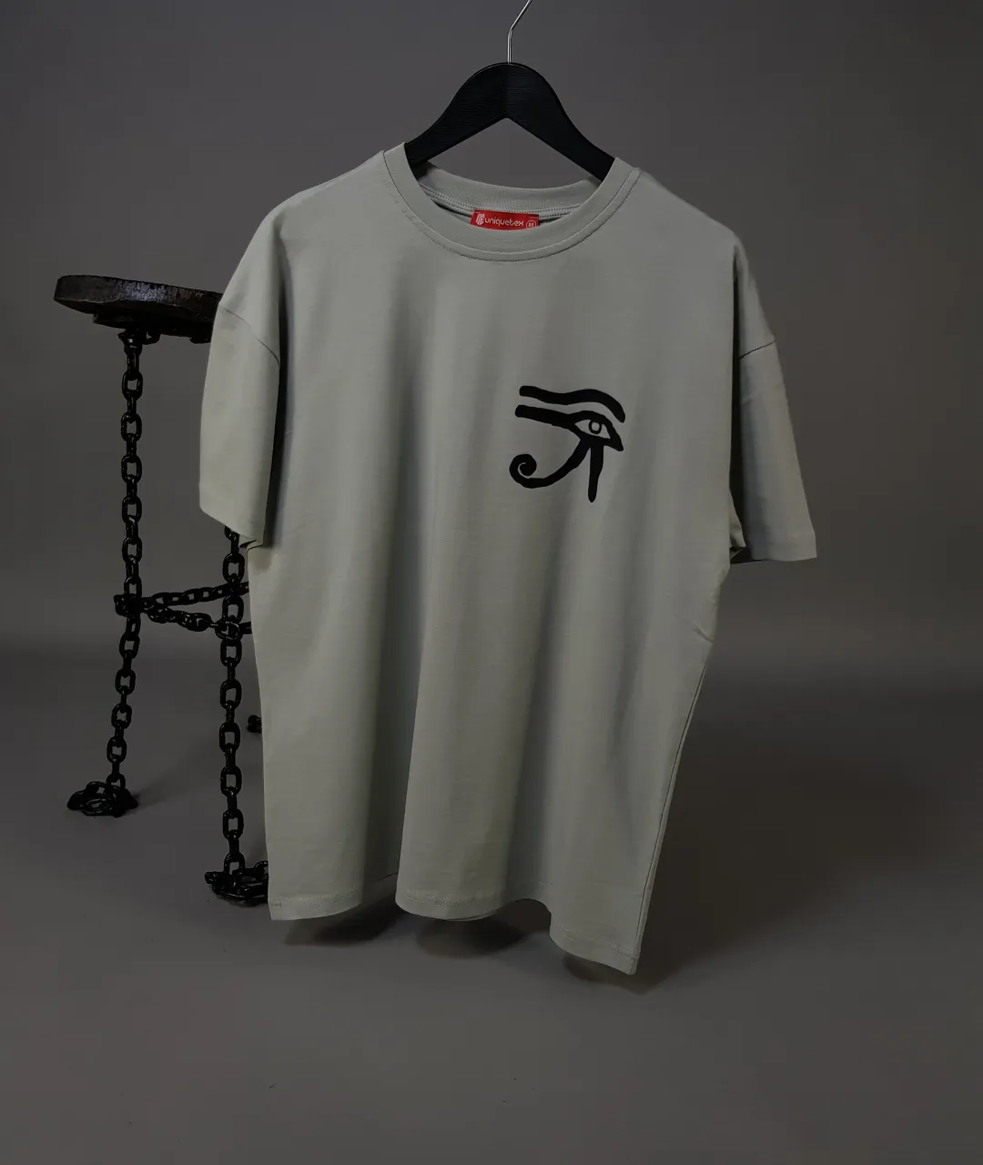 Sırt kısmında Mısır alfabesinden esinlenilmiş semboller dikkat çekici şekilde sıralanmıştır. Bu simgeler, binlerce yıl öncesinin kültürel zenginliğini günümüze taşırken, baskılı tişört tasarımına mistik bir hava katar. Ön yüzünde yer alan Horus’un Gözü sembolü ise, tarihte koruma ve bilgelik anlamını taşır. Tişörtün modern tasarım anlayışı, minimalist ve güçlü detaylarıyla birleşir. Kadın tişört modelleri içinde fark yaratmak isteyenler de erkek tişört koleksiyonunu zenginleştirmek isteyenler de bu tasarımı rahatlıkla tercih edebilir.