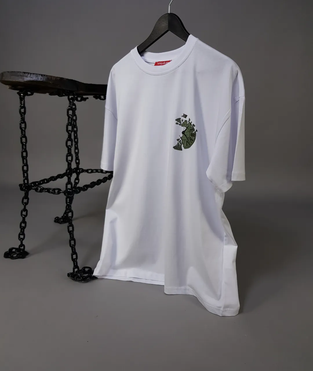 Zamanın Parçalanışı Oversize Unisex Tişört; moda ve anlamı tek bir tasarımda buluşturan eşsiz bir giyim parçasıdır. Minimalist tarzı, derin felsefi göndermelerle birleştirerek modern sokak stiline yeni bir boyut kazandırır. Antik çağlardan ilham alan tasarımı ve yüksek kaliteli kumaş yapısı ile hem konforu hem de tarzı bir araya getiriyor.